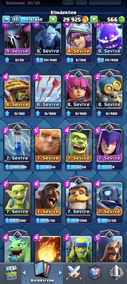 🔥HESAP SEVİYESİ 17 DİR VE HESAPTA 35 ADET KART BULUNUR