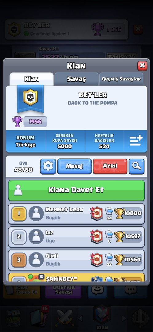 Aktif ve düzenli klan4 yıllık köklü geçmişKlan Savaşı Kupası: 1956Lig: Altın LigZamanında yerel sıralamaya girmiştirKlan tamamen bana aittirÖdeme sonrası güvenli ve anında devirHızlı teslimatFiyat uygundur, ciddi alıcılar yazsın