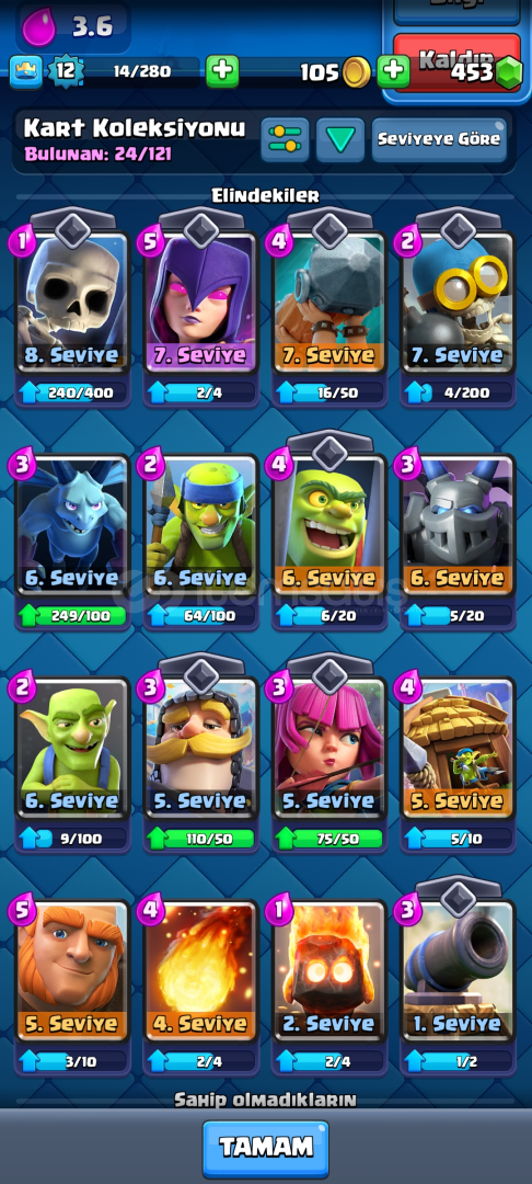 1k kupa+12 lvl+453 elmas+yarım evrim