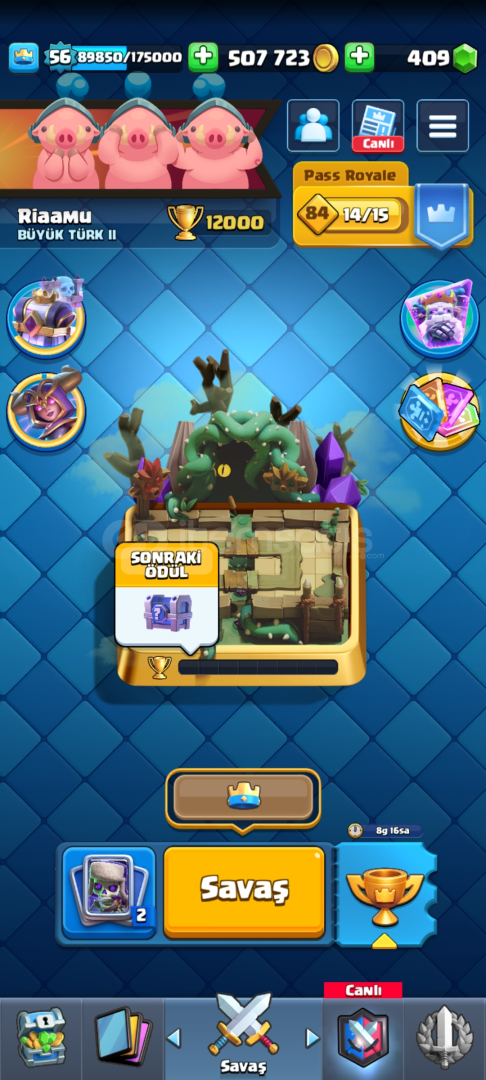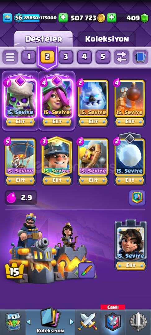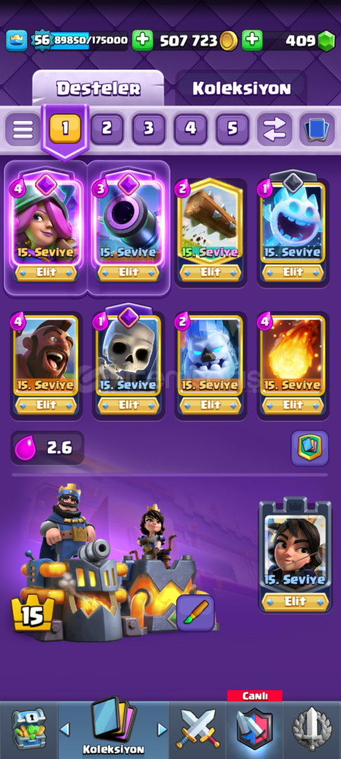 2.6 Hog ve miner-loon desteleri tamamen max, x-bow neredeyse max, ayrica nihai görmüş hesaptir. diger kartlarin seviyeleri guzeldir.yks öğrencisi oldugum icin satiyorum.PAZARLIK PAYI VARDIR