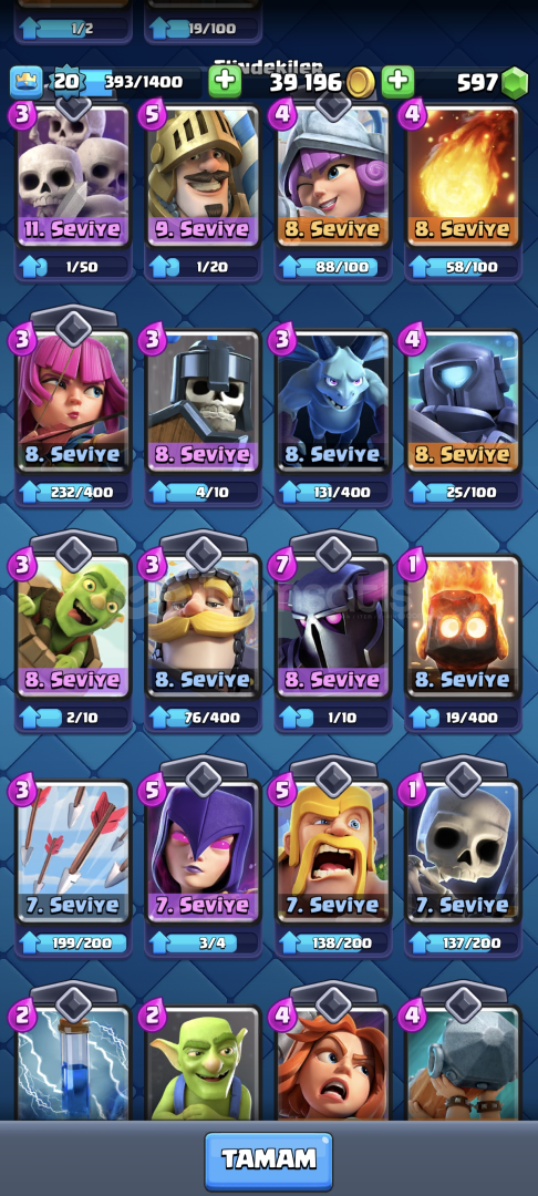 🔥HESAP SEVİYESİ 20 DİR VE HESAPTA 40 ADET KART BULUNUR