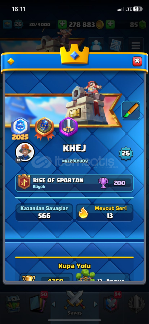2025CRL turnuvası rozeti büyük mücadele rozeti 26 seviye hesap mezarlık destesi ücretsiz isim değiştirme hakkı ve mail değişme hakkı mevcut