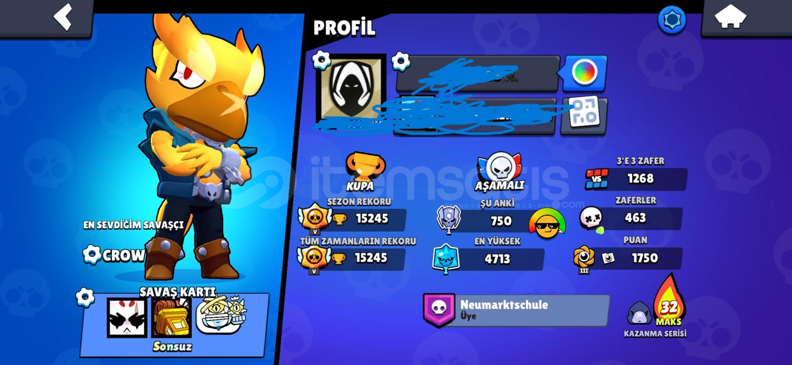 59 SEVİYE12150 KUPA22 EVRİM16 KULE DESENİ46 MAX + 19 ELİT100 EMOJİ15 K BRAWL STARS HEDİYE