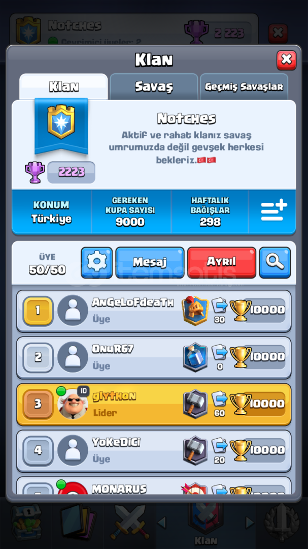 Klan aktif olarak 2223 kupadır. İsmi “Notches” dir. İsterseniz herkesi atarak da teslim edebilirim alıcıya şimdiden hayırlı olsun.