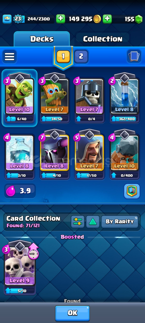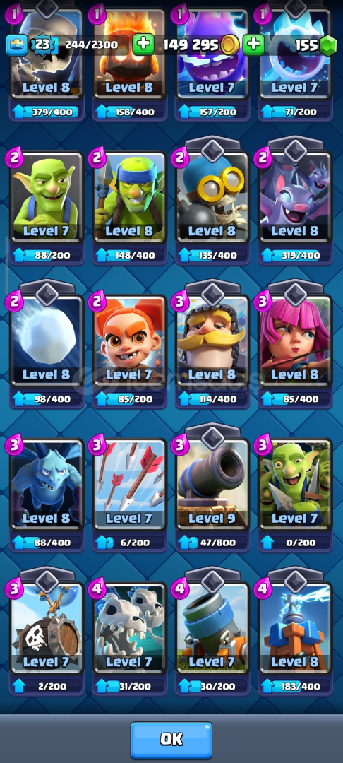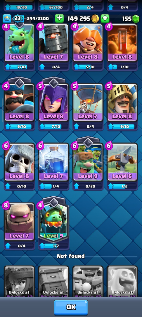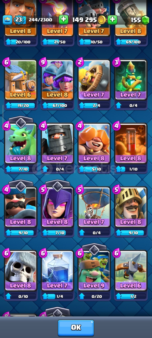 71/120 kart (5 efsanevi!) - 149.245 altın - 155 Elmas kendinizi daha da güçlendirmek için kullanacağınız bir sürü büyülü öge - profil aksesuarları.. detaylar için görselleri inceleyebilirsiniz.