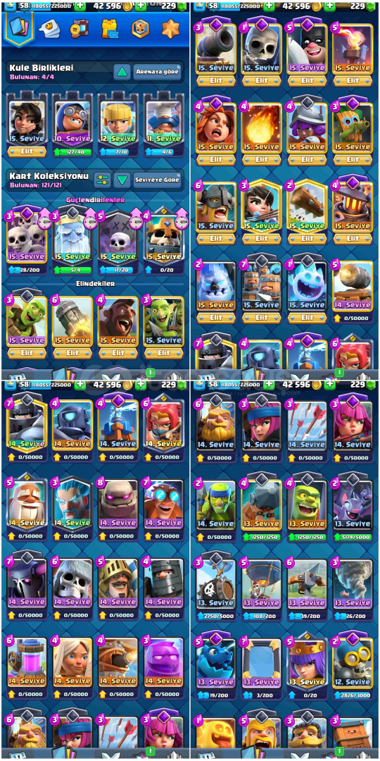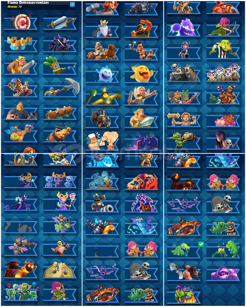 ✓ İskeletler, İskelet Ordusu, Top, Cellat, Valkür, Dart goblini, Fırın, Tesla, Okçular, Elektro ejderha, Bombacı, Yavru Ejderha, Büyücü ve avcı evrimleri bulunmaktadır