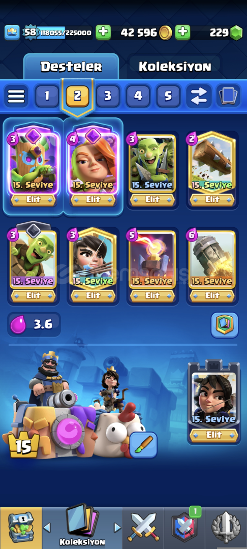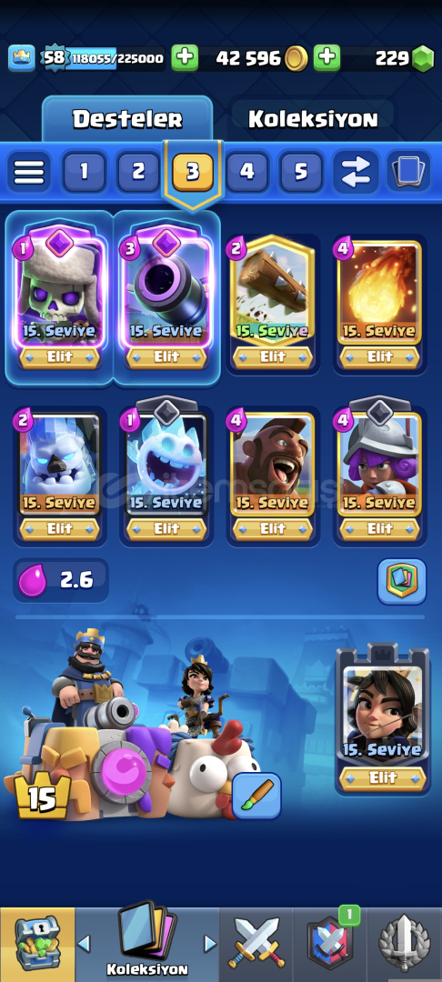 Öncelikle merhaba arkadaşlar yıllardır metadan düşmeyen ve antisi olamayan 2.6, LOG BAİT VE VİPER DESTLERİ maxtır ✓ 59 Seviye olmak üzeredir✓ 479.99 TL lik Pass Royale açılmıştır ✓ bütün log bait desteleri maxtır✓ 12.000 Kupadır ✓ 106 Tane Nadir Emoji bulunmaktadır ✓ İskeletler, İskelet Ordusu, Top, Cellat, Valkür, Dart goblini, F...