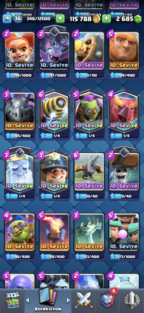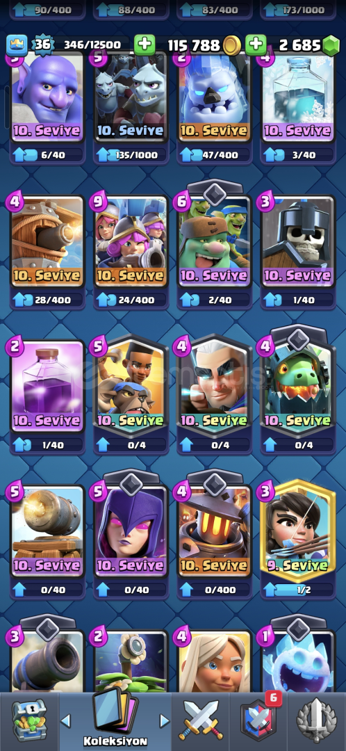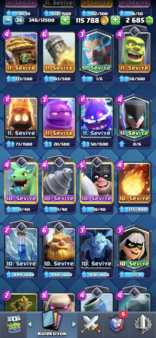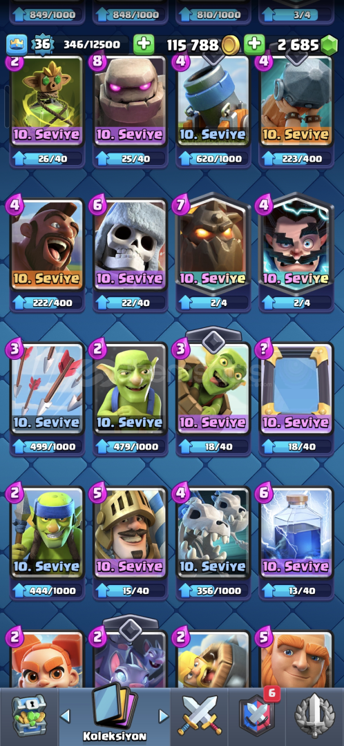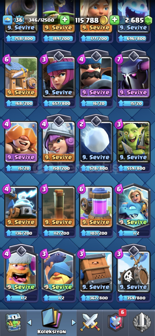 -HESAP 36LV VE 6800 KUPADIR-2885 YEŞİL TAŞ VARDIR-119 ADET SAVAŞÇI KARTI VARDIR-5 ADET EVRİMLİ KARAKTER İLE BERABER 5 ADET EVRİM KARTI BULUNUR-4 ADET BÜYÜLÜ KİTAP-8/8 KART GÜÇLENDİRME İKSİRİ-ELİT JOKER KART-24 ADET EMOJİ BULUNURPAZARLIKSIZDIR. ALAN KİŞİYE HAYIRLI OLSUN ŞİMDİDEN