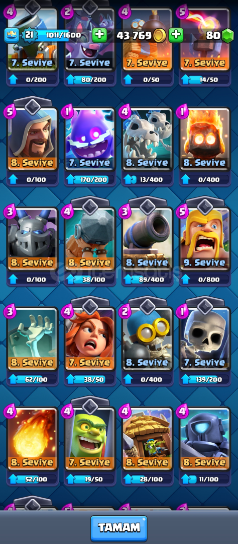 ⭐Bizi Tercih ettiğiniz için teşekkür ederim⭐⭐Bu İlan İle İlgili⭐⭐2000 Kupalı✅⭐⭐21 Seviyeli✅⭐⭐16 Tane Sıradan Kart✅⭐⭐16 Tane Ender Kart✅⭐⭐8 Destansi Kart✅⭐⭐1 Efsanevi Kart✅⭐⭐1 Evrim Kart✅⭐⭐3 Tane Mükemmel Değerli Emoji✅⭐⭐E Posta Değişir ...