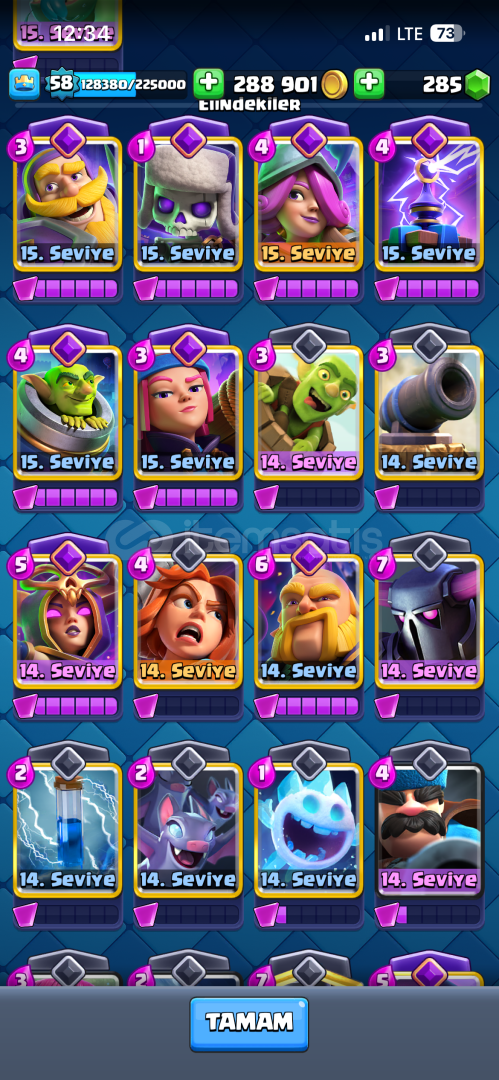 HESABIM 14 k kupa 58 seviye emek hesabıdır 15 tane elit kart vardır metada olan binici deprem maxtır 45 tane 14 seviye ve üstü kart vardır nihai 2k madalyona çıkmıştır oyunun en popüler emojileri vardır telefon doğrulaması açılmamıştır bile eposta direkt devredilecektir yanında 149 seviye belediye 11 coc da vardır mezarlık destesi max olan hesaplarla düşün&uu...