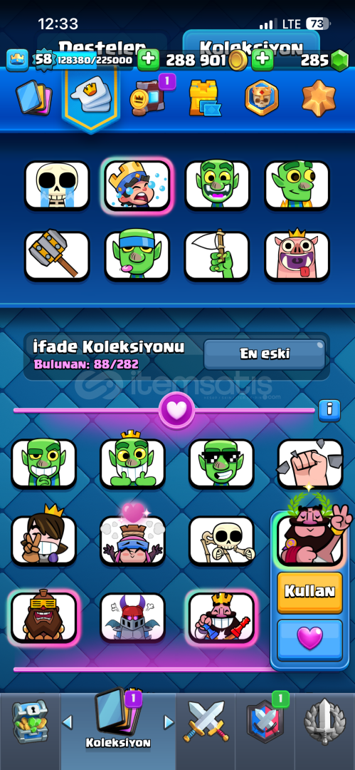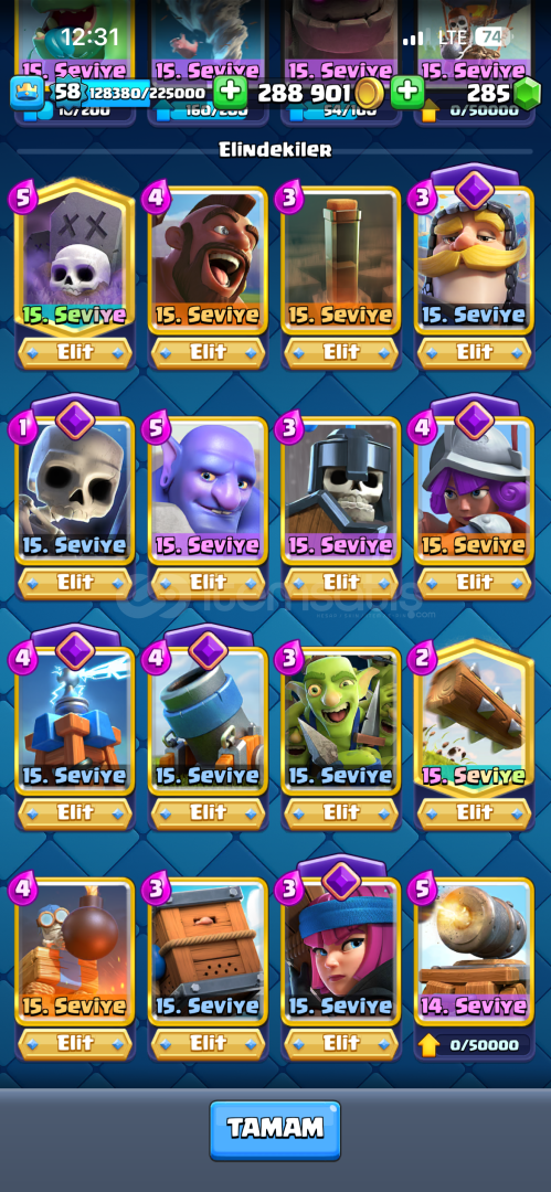 HESABIM 14 k kupa 58 seviye emek hesabıdır 15 tane elit kart vardır metada olan binici deprem maxtır 45 tane 14 seviye ve üstü kart vardır nihai 2k madalyona çıkmıştır oyunun en popüler emojileri vardır