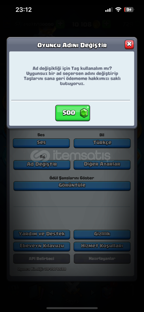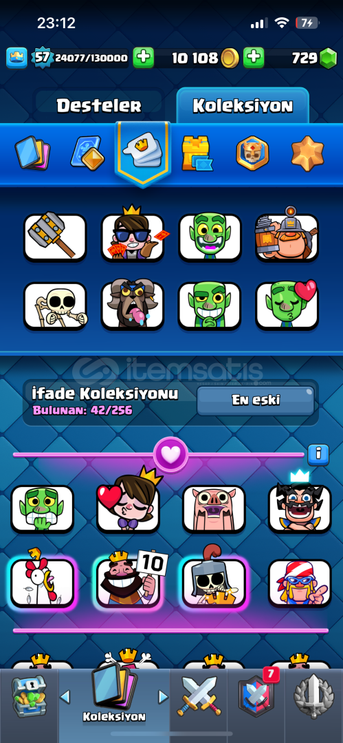 Hesap fotoğraflarda göründüğü gibidir.57 SEVİYE19 Tane Evrim Açılmıştır.Yeni eklenen 4 kahramandan 3 tanesi açıktır.Güncel olarak royale pass'i açıktır.9 Yıl Oynadı başarımına sahip değerli, nadir hesaptır.10000 Kupa üzerindedir.İlanı satın almanız durumunda hesap, sıfır kurulmuş bir mail adresine aktarılıp maill...