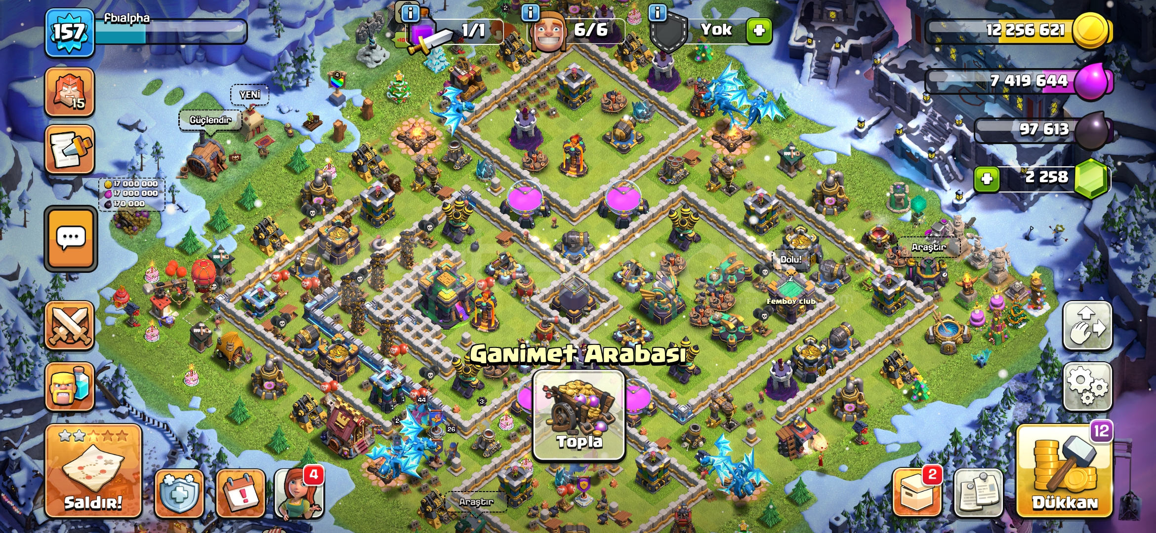 Clash of clans: 157 seviye ful map 4 seviye elektro ejder skinli karakterler ve dahası