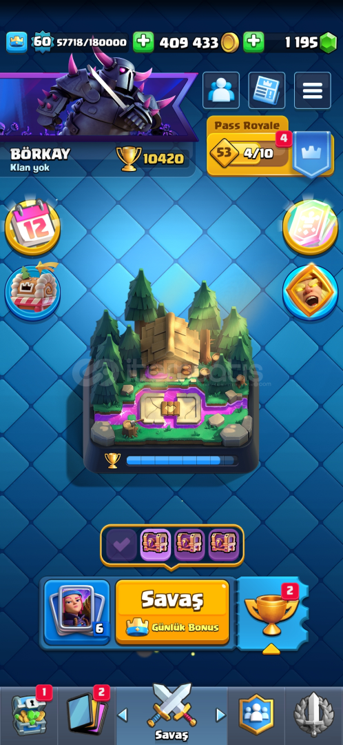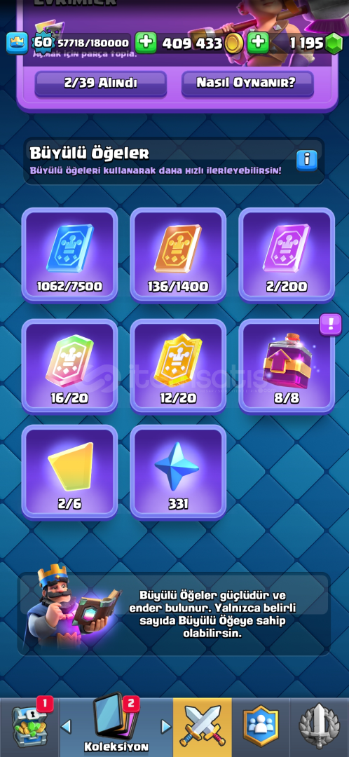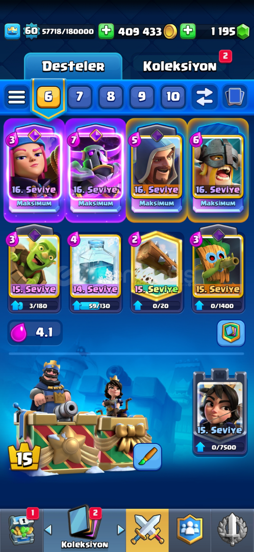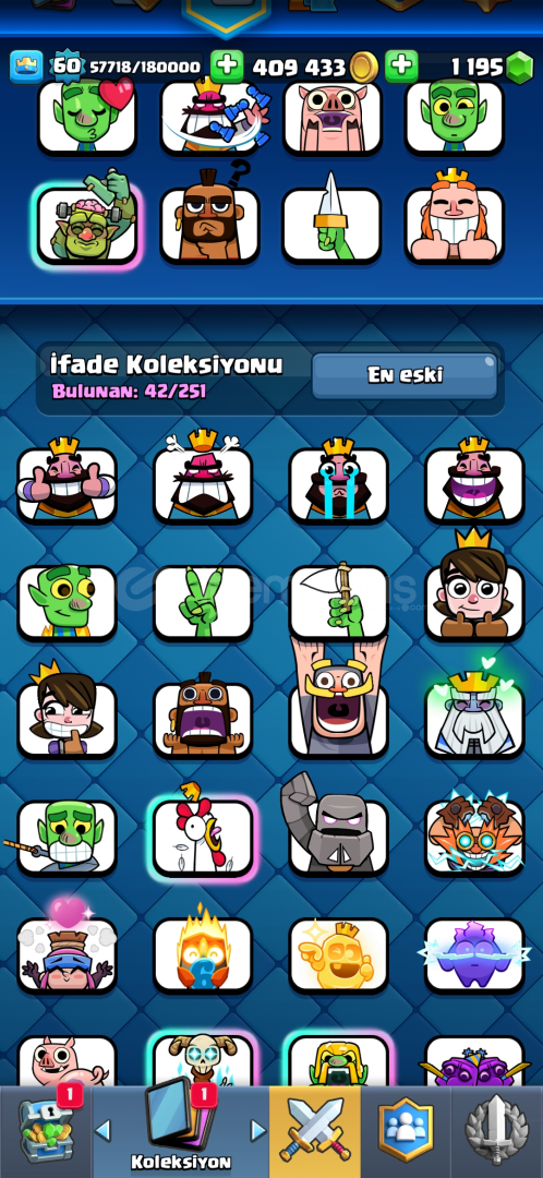 Clash royale: 10000+ 4 max seviye 2 tane evrim 1k elmas 400bin altin 16 adet efsanevi kart ve sayısız efsane emoji