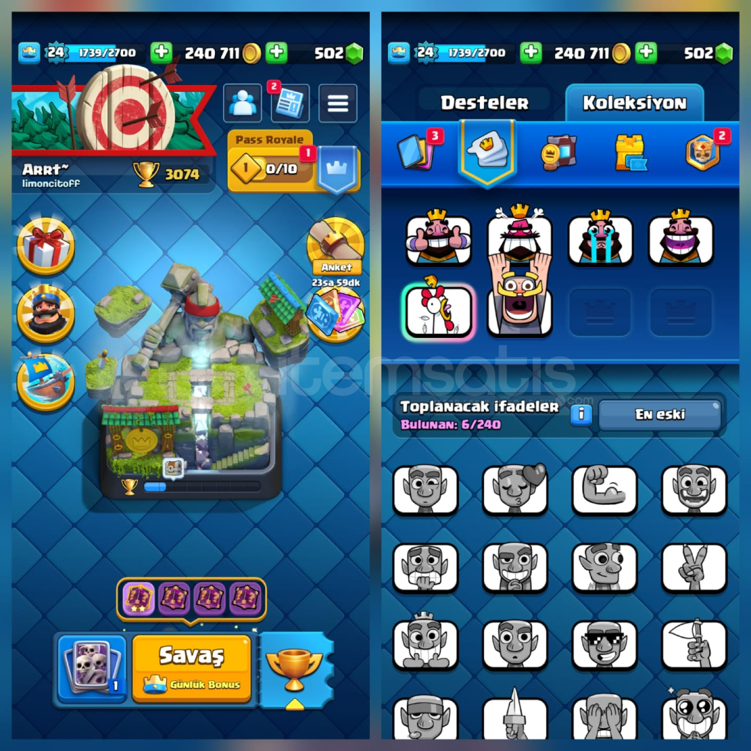 3074Kupa 64Kart 6İfade 1Kule İsimHakkı 502Elmas