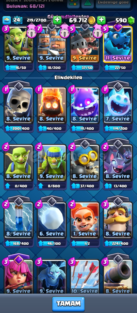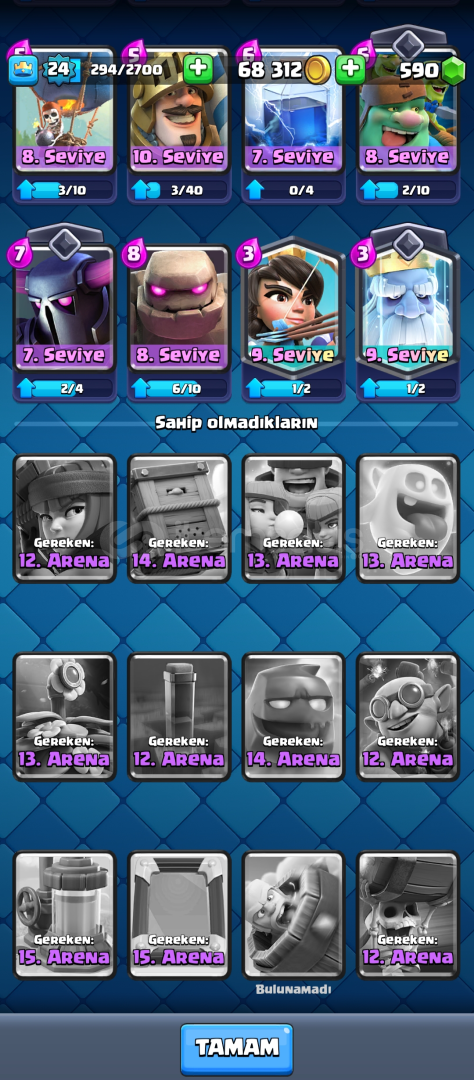 ⭐Bizi Tercih ettiğiniz için teşekkür ederim⭐⭐Bu İlan İle İlgili⭐⭐3500 Kupalı✅⭐⭐24 Seviyeli✅⭐⭐26 Tane Sıradan Kart✅⭐⭐24 Tane Ender Kart✅⭐⭐16 Destansi Kart✅⭐⭐2 Efsanevi Kart✅⭐⭐1 Evrim Kart✅⭐⭐Mükemmel Değerli Emojiler✅⭐⭐590 Taş Var Hesapta✅...