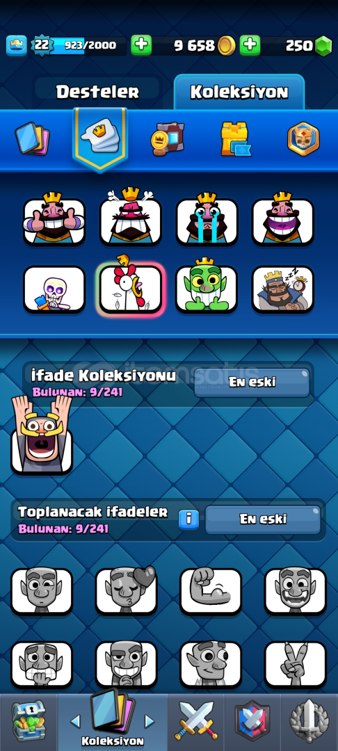 3607 kupa22 lvl250 elmas69 kart4 tane Yarım evrim Kraliyet hayaleti. 6/1İskeletler. 6/1Pekka 6/1Fırın. 6/1İsim değişiyor Telefon numarası bağlı değil E posta şifre verilecek