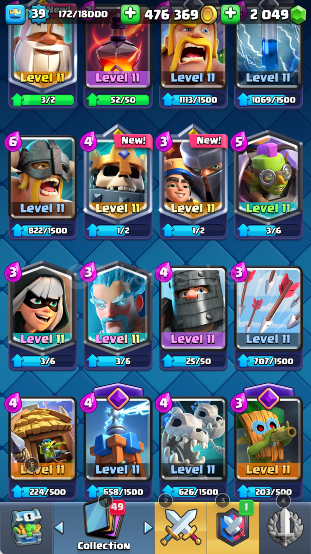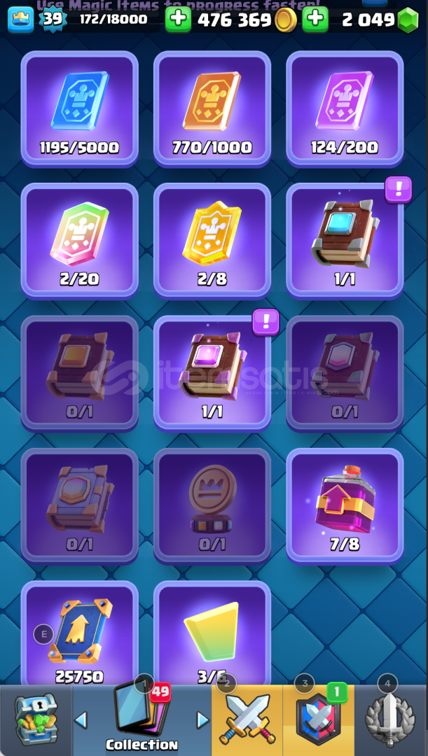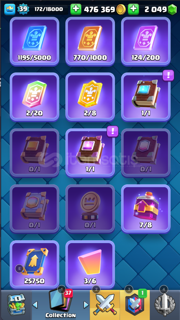 Pazarlık yapmıyorum. Teklif etmeyiniz.4000 Elmas var.Tüm kartlar açıktır. Yeni Şampiyonlardan Silahşör açık.Resimler eskidir. detay için yazabilrsini.zMail aktarılacaktır.