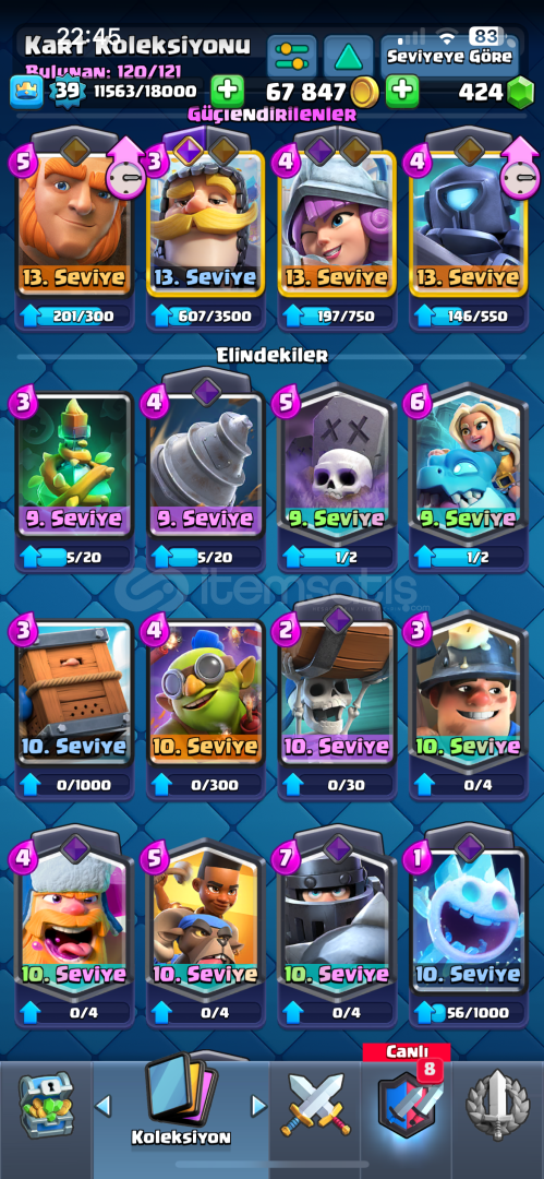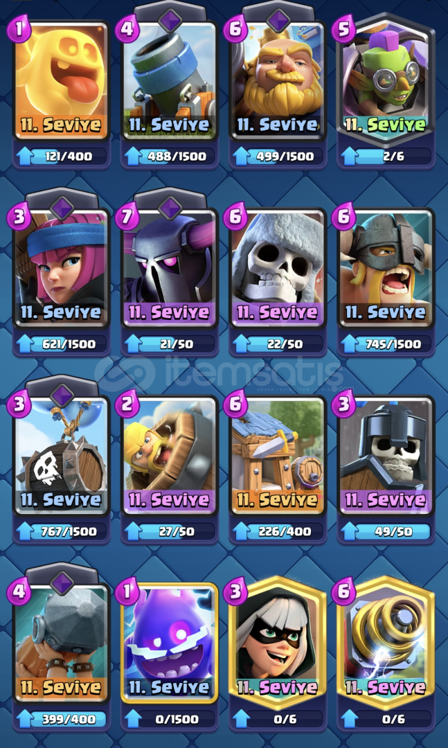 39.Seviye20.Arena7.622 Kupa120/121 Kart17/246 Çıkartma30 Adet Flama Dekorasyonu35 Adet Flama Çerçevesi7/39 Evrim36/131 Rozet...