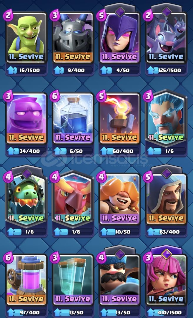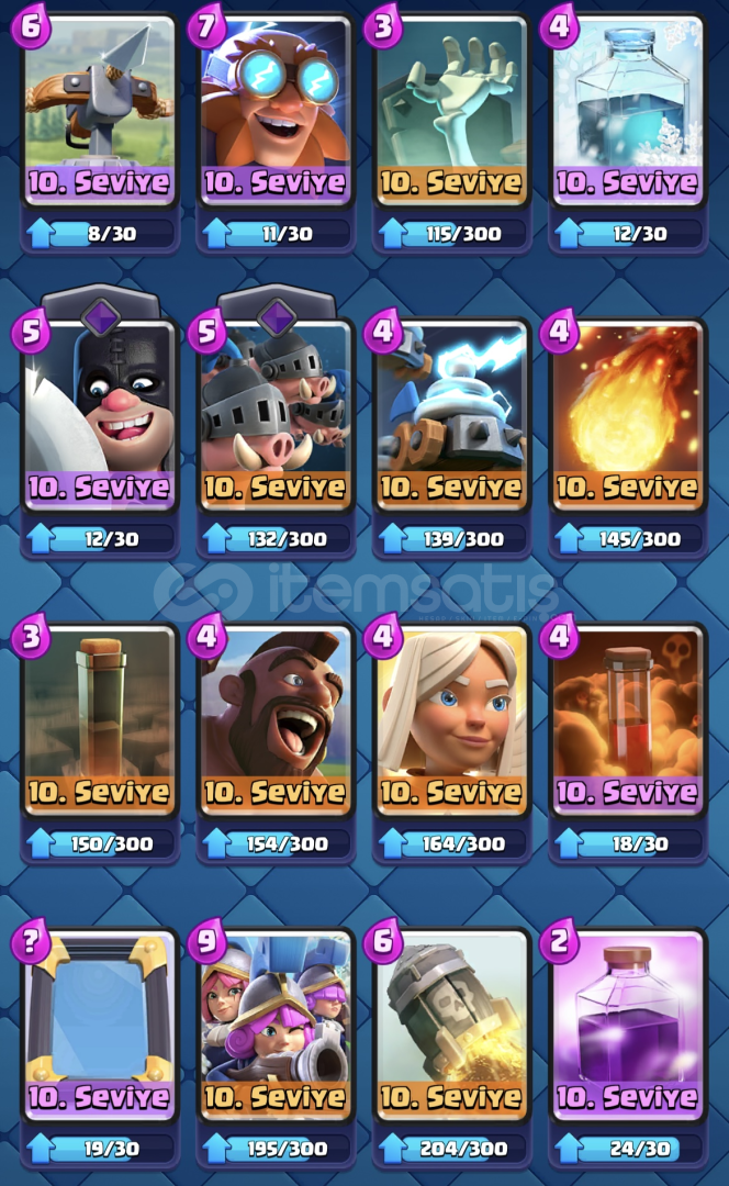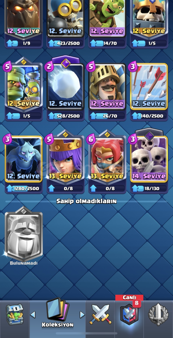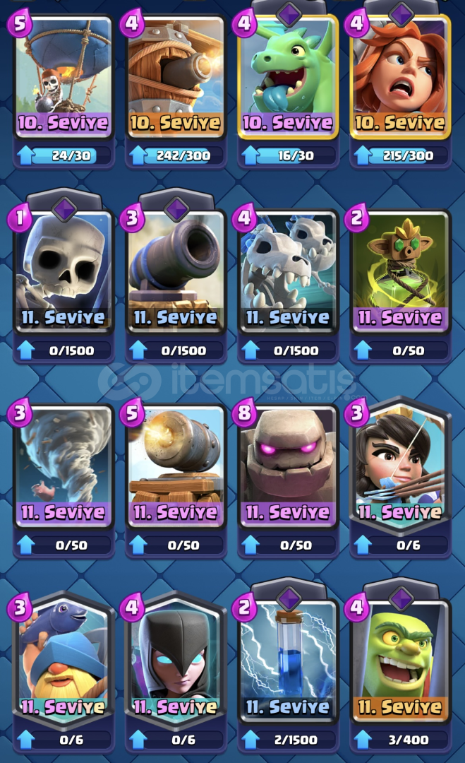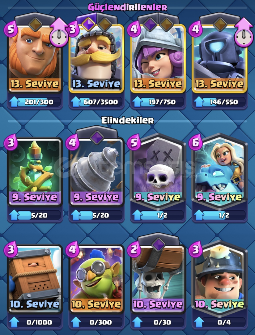 39.Seviye20.Arena7.622 Kupa120/121 Kart17/246 Çıkartma30 Adet Flama Dekorasyonu35 Adet Flama Çerçevesi7/39 Evrim36/131 Rozet67.847 Adet Altın424 Adet Taş