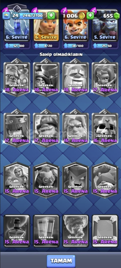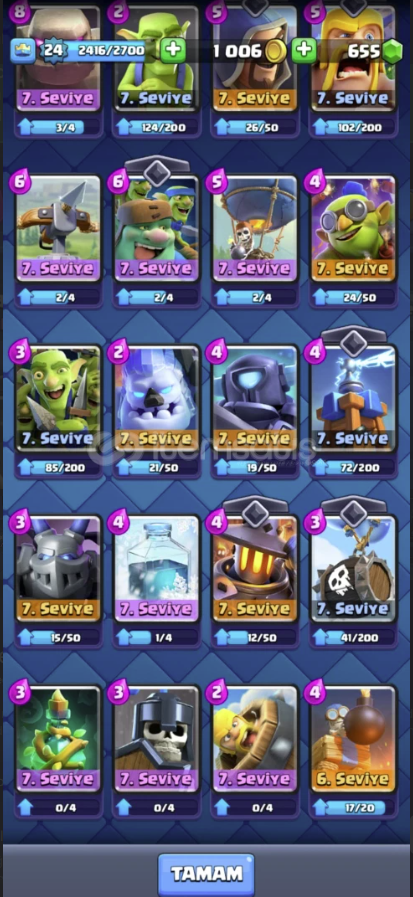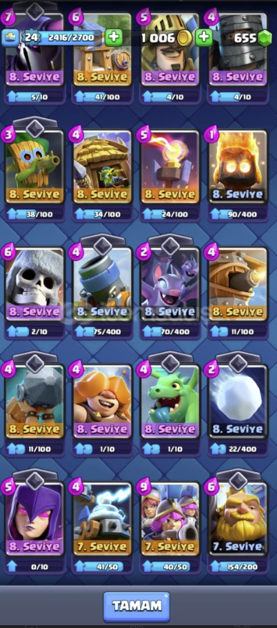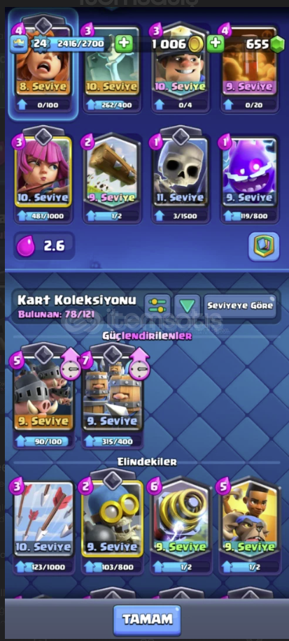 3 adet yeni emojiID bağlıaltın şövalye flamasımadenci, zehir destesi7 adet efsanevi kart3 adet erimli cadı parçasıtüm kartlar fotoda belirtilmiştireposta ile teslim edilir.