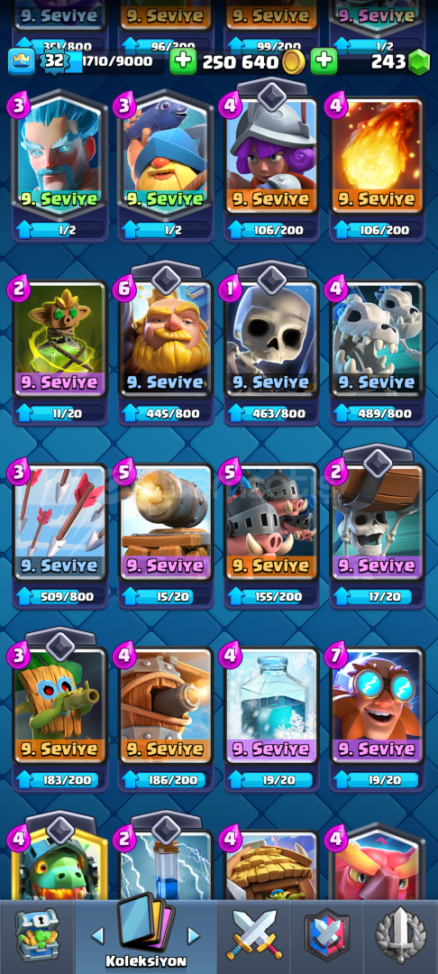 Joker kart var 1 tane 4 evrim var ama diğer kartlarda da 3 evrim açık cadı barbarlar ve cehennem ejderhası 3 evrim kartı açık sadece pekka büyücü Tesla mega şövalye evrimi açık e posta değişimi var
