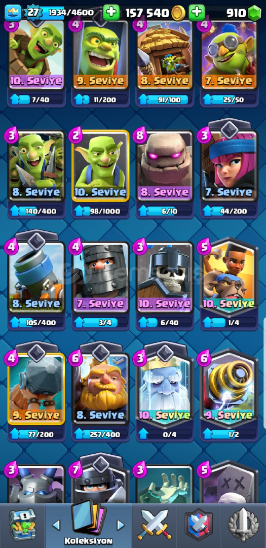 🔥910 Elmas🔥 157.540 Altın🔥10 ve 8 Kule Seviyesi🔥15 Tane Emoji🔥14 Tane Flama🔥15 Tane Flama Çerçevesi🔥83 Tane Kart🔥8 Tane Efsanevi Joker Kart🔥Birçok Güzel ve Toxic Emoji🔥Sağlam Meta Desteleri🔥Oldukça Uygun Fiyatlı🔥Yeni Alıcısına Anında Teslim Edilir