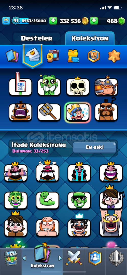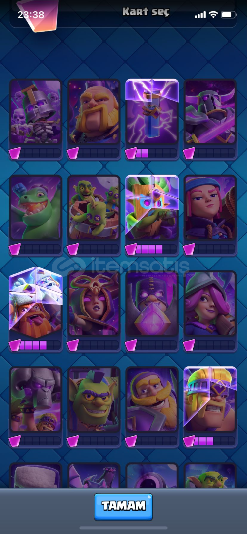 En iyi Clash Royale hesaplarıyla oyunda fark yaratın! Hedeflerinize ulaşmanız için ideal hesaplar burada.Clash Royale Hesap İçeriği :6 adet evrim,4karttsdayari basılmış evrim1 tane 15 sv kart332k altın 463 elmas118KART ( Oyunda 123 Kart bulunuyor )7710 Kupa33 Emoji3 Kule Deseni41 LevelVe Daha FazlasıSorularınızı ve isteklerinizi mesaj kısmından bize iletebilirsini