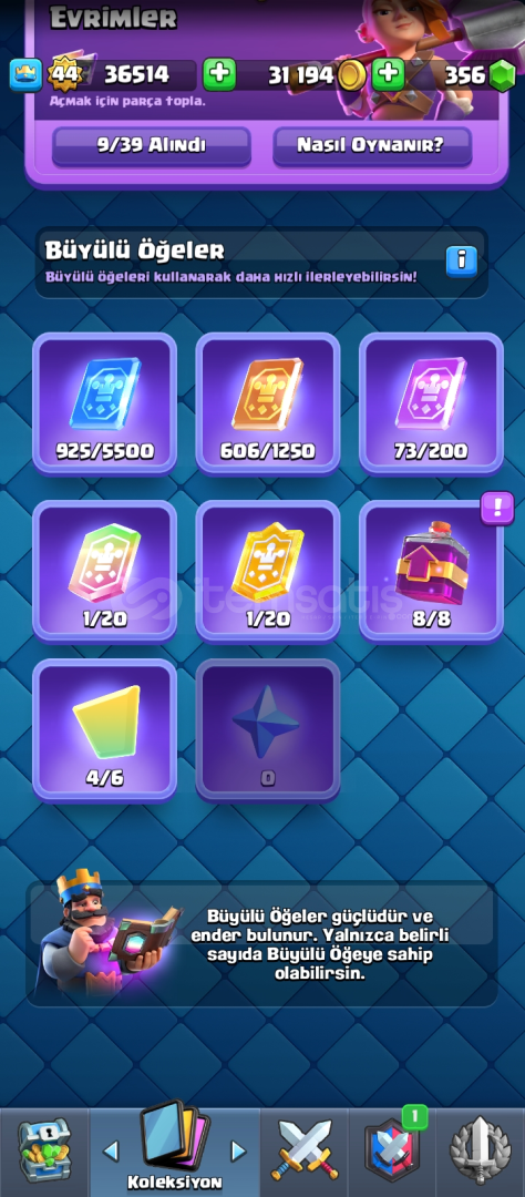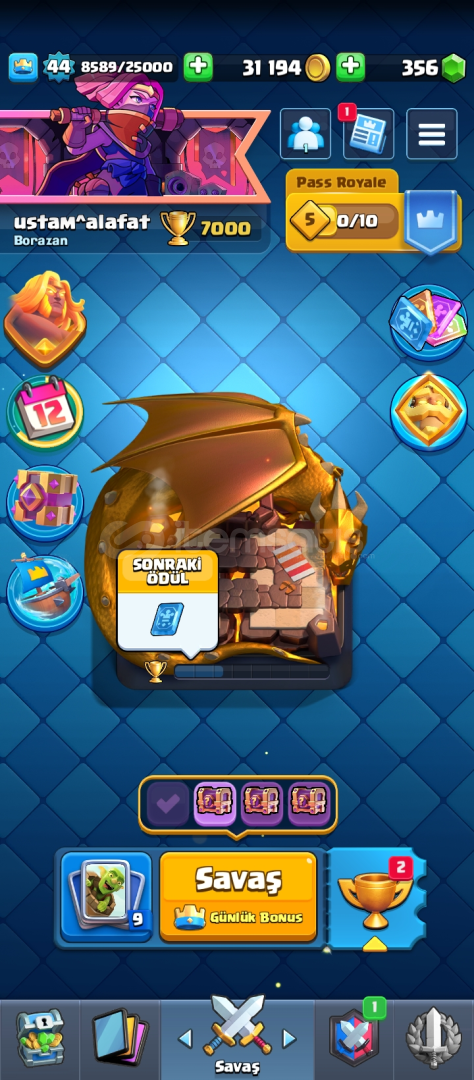 44 seviye 7000 kupa 250 elmas clash royale