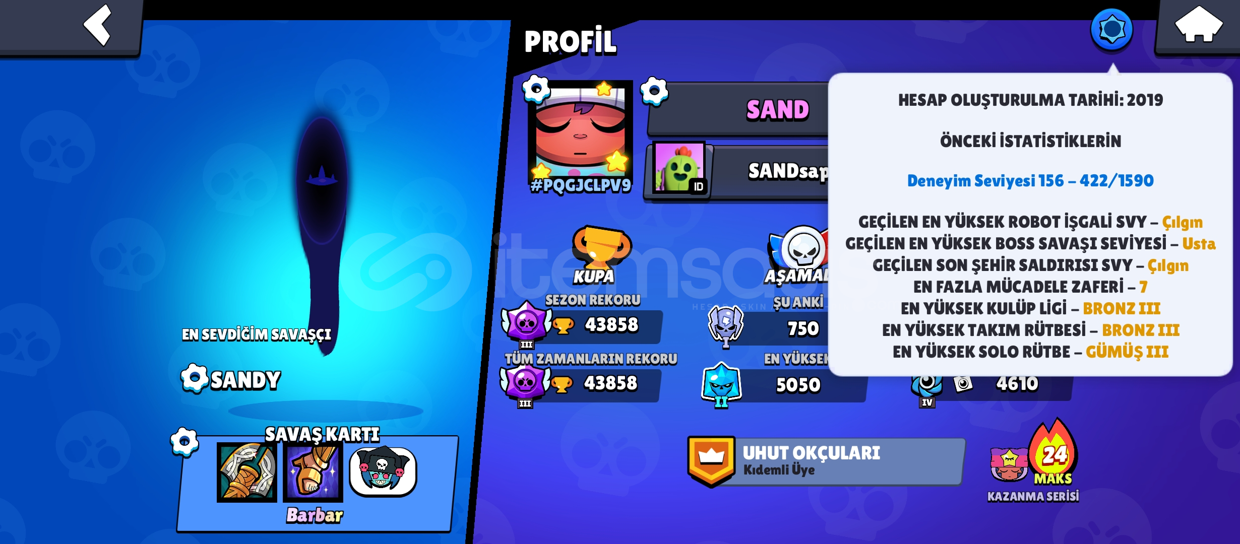 8k tüm karakterli 8 evrimli 5 kule görünümlü 30 emojili 13 kule seviyeli cr hesabı44 bin kupa 180 kostüm 2019 yılından kalma nadir bs hesabı