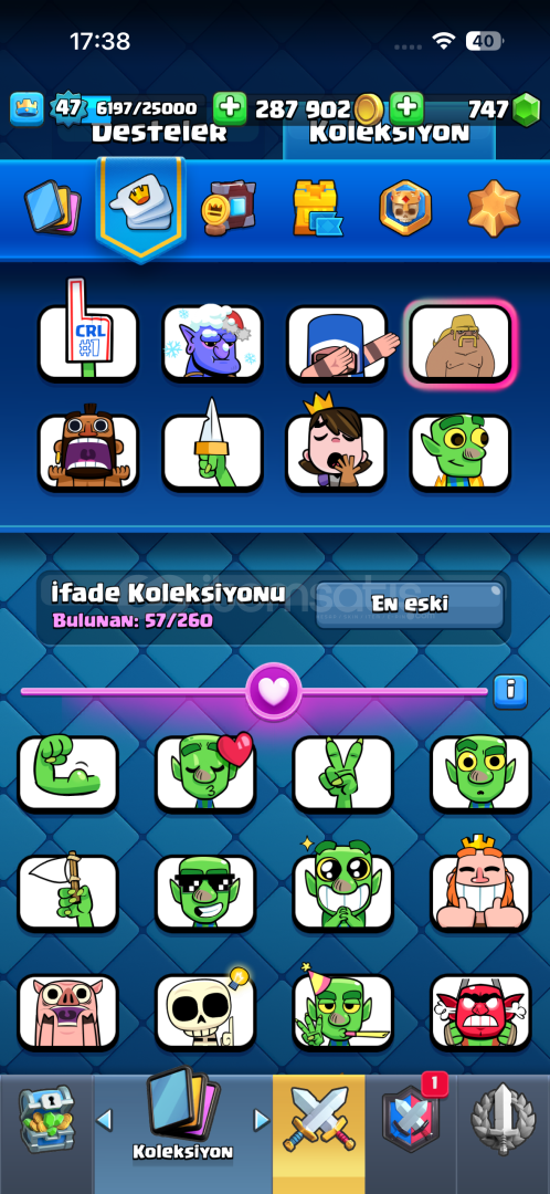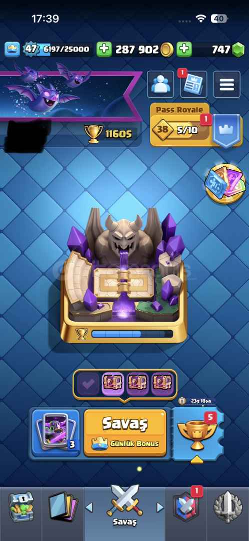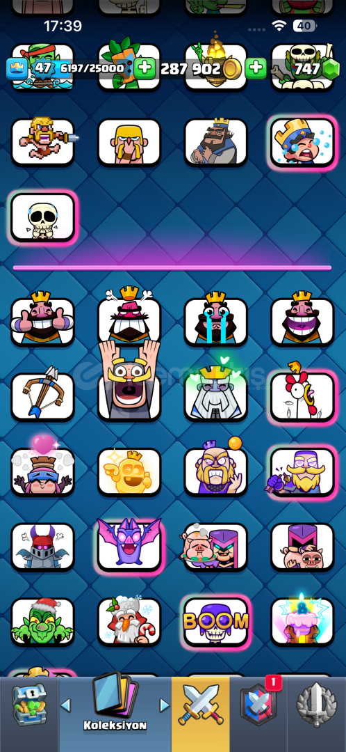 47 seviye 11605 kupa 57 emojili dolu hesap