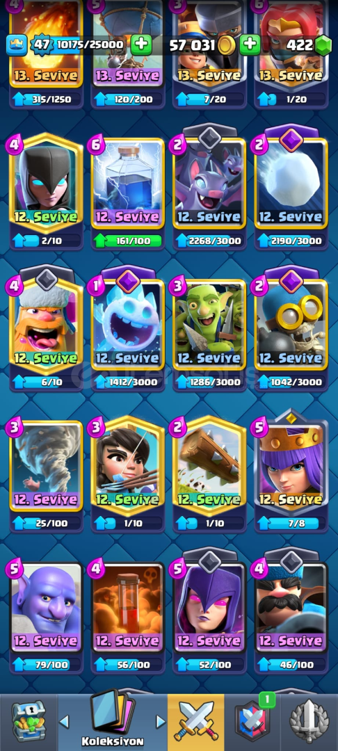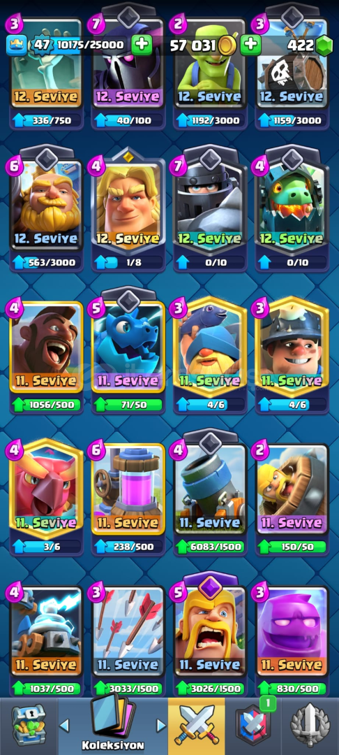47SEVİYE-8359KUPA-422 TAŞ -57 BİN ALTIN-EVRİM KARTLAR BOMBACI ŞÖVALYE-İSKELETLER-HAVAİ FİŞEKÇİ-DEV KAR TOPU-BUZ RUHU- BARBARLAR-VALKÜRELİT KARTLAR-HAYDUT-SOVALYE-İFADE 36/255-İSİM DEĞİŞTİRME 500 TAŞHERHANGİ BİR KİLİT, ENGEL YEMEMEK İÇİN NE YAPMALIYIM?-OYUNDA, BAŞKA BİR YERDE SATIM İŞLEMİNDEN BAHSETMEYİN