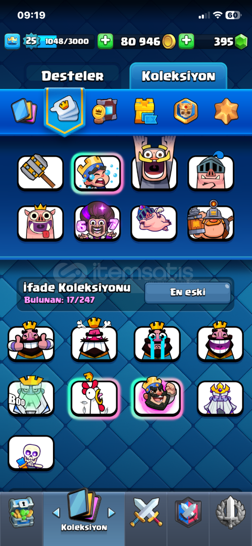 Hesapda 2 adet evrim parçası kartlar kitabı bulunmaktadır ayrıca emojilerde güzeldir