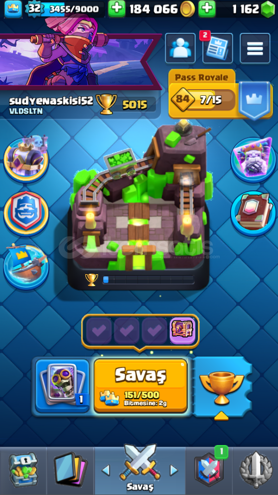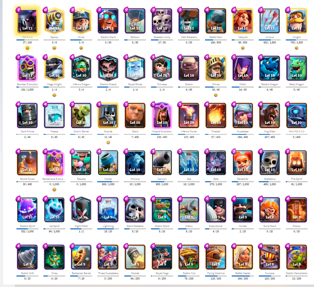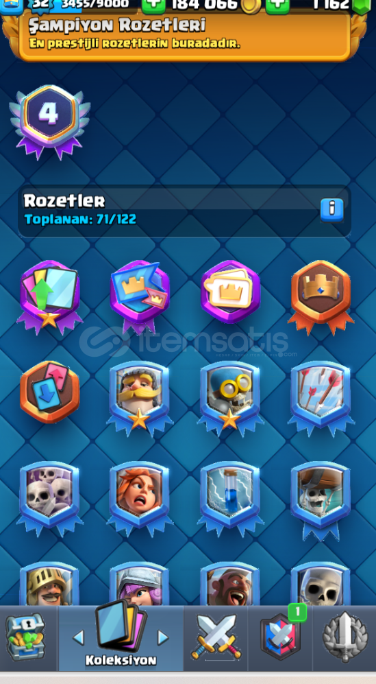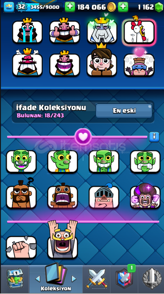 CLASH ROYALE HESAP SATIŞI!4 YILLIK ROZETLİ, 32 SEVİYE HESAP(PAZARLIK VAR)5000KUPA903KART (4 ADET EVRİM KARTI DAHİL)18 İFADE (EMOJİ)20 ADET FLAMA22 ÇERÇEVE3 ADET KULE SKINI (TOWER SKIN)1150 TAŞ (GEMS)200.000 ALTIN