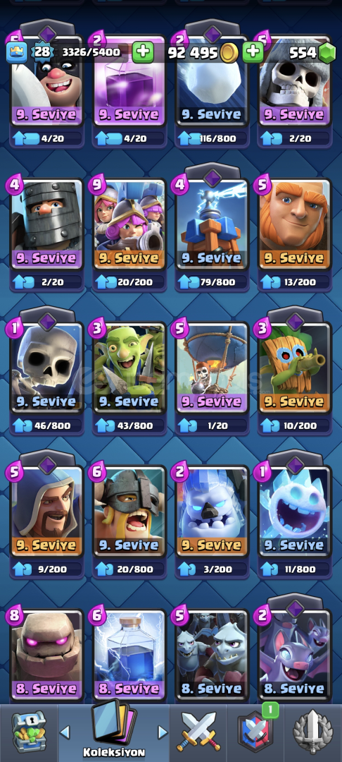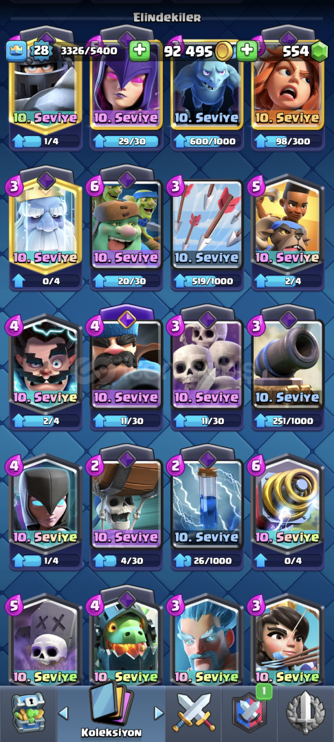 🌀HESAP TAMAMEN ŞAHSIMA AİTTİR MAİL DEĞİŞİMİ YAPILACAKTIR🔥HESAPTA AVCI EVRİMİ VE 3 ADET İSKELET FIÇISI EVRİMİ PARÇASI VARDIR AYRICA BOLCA EMOJİ VE BİR SÜRÜ EFSANEVİ KART🛡HESABIN MAİLİ BİZE İLETTİĞİNİZ MAİL İLE DEĞİŞTİRİLİR DOLAYISIYLA HESAP SİZİN ÜSTÜNÜZE OLUR ...
