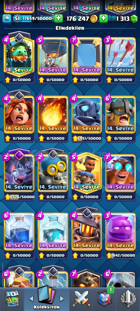 51 seviye 8 yıllık 8400 kupa sahane hesap