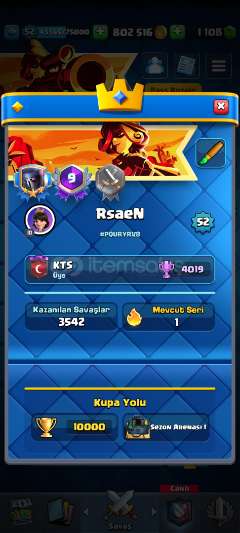 52 SEVİYE 9 YILLIK 10000 KUPA HESAP KORUMASI YOK