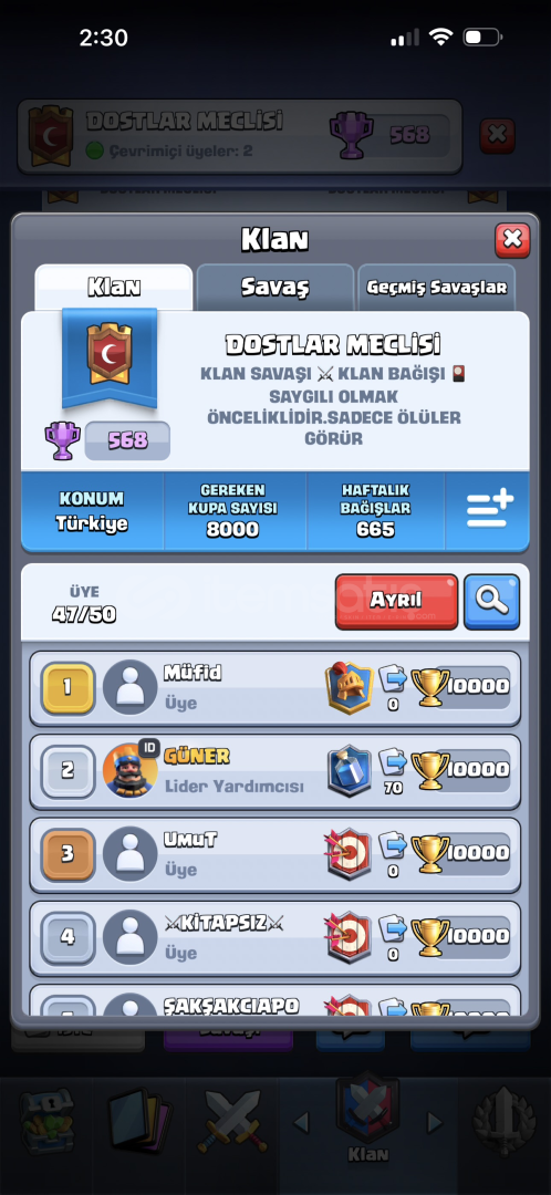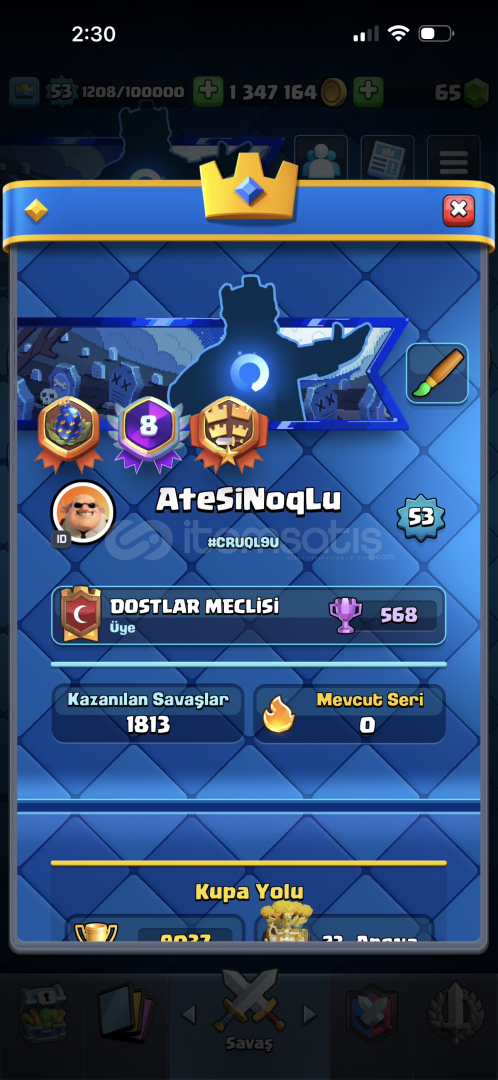 53 Level 11 Adet Evrim 6 Adet ELİT50 Kişilik Klan liderliği dahil6 Adet Kule deseni62 Adet İfade1,4 Milyon Altın MevcutSon Fi...