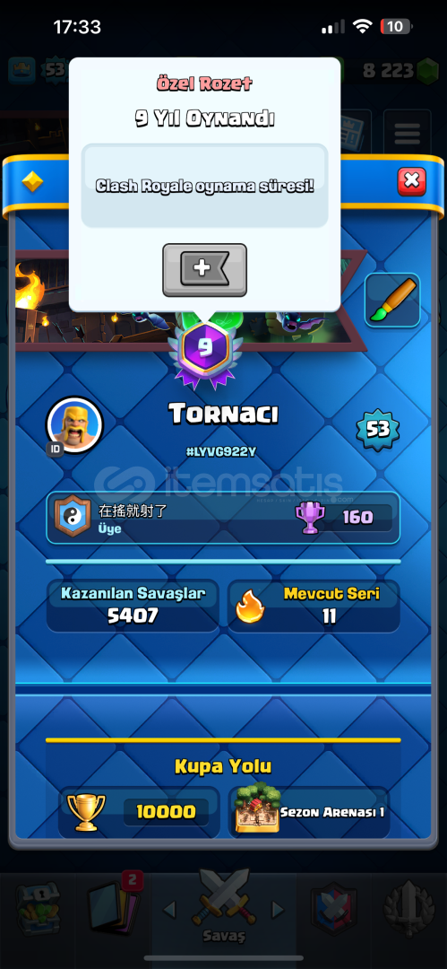 10000 KUPA53 LEVEL31 ADET 14 SEVİYE KART3 TANE ELİT KART9 YIL OYNAMA ROZETİKD FULL5 EVRİM8200 YEŞİL TAŞ1 ADET DESTANSI KARTLAR KİTABI2 ADET EVRİM PARÇASI