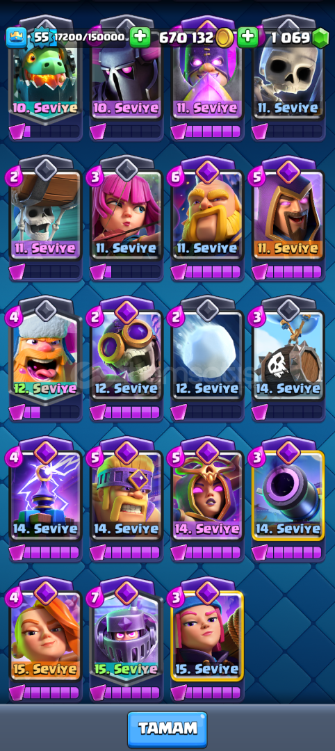 55 lvl,10 bin kupa,14 evrim,1000 elmas