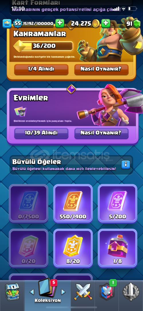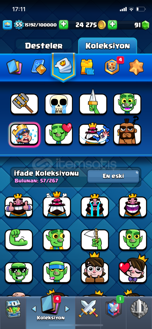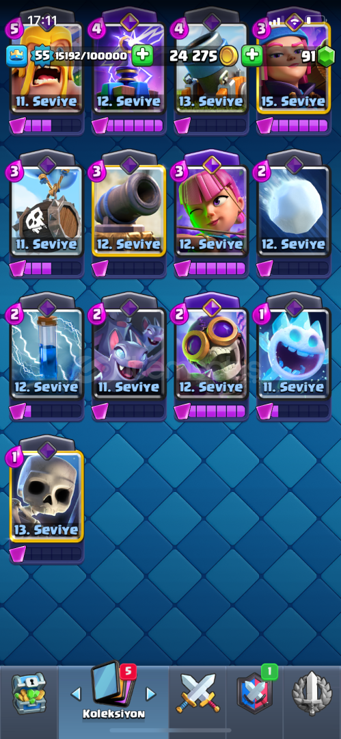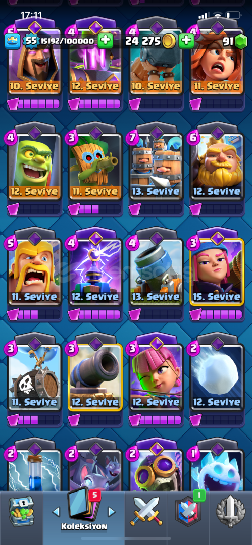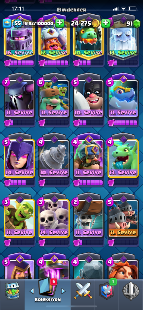 +Hesab 55 seviyedir+10 bin kupadır+57 emoji+Hesabın yanında 9 belediyeli coc hesabı hediye+Kule birliği 15 dir+Mega şövalye 16, Mini pekka 15 , Zehir 15 , havai fişekçi 15 dir+10 evrim vardır evrimlerin çoğundan yarısı açılmasına az kalmıştır+İndirim olur