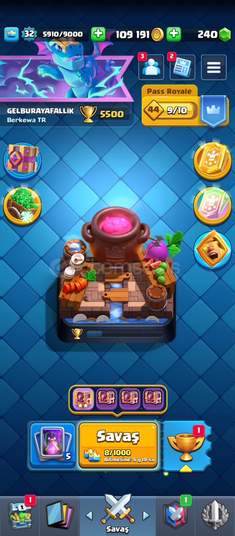 • ⭐ MAİL ÜZERİNİZE YAPILIR ⭐• 🔥 ANINDA TESLİMAT 🔥•5500+ KUPA•33 LEVEL•4 EVRİMLİ (BÜYÜCÜ,KÖSTEBEK,CELLAT, OKÇULAR,MEGA ŞÖVALYE AZ KALDI)•NEREDEYSE TÜM KARAKTERLER AÇIK SADECE 5 KARAKTER EKSİK.💥 PİYASANIN ALTINDA FİYAT BU FIRSAT KAÇMAZ! 💥