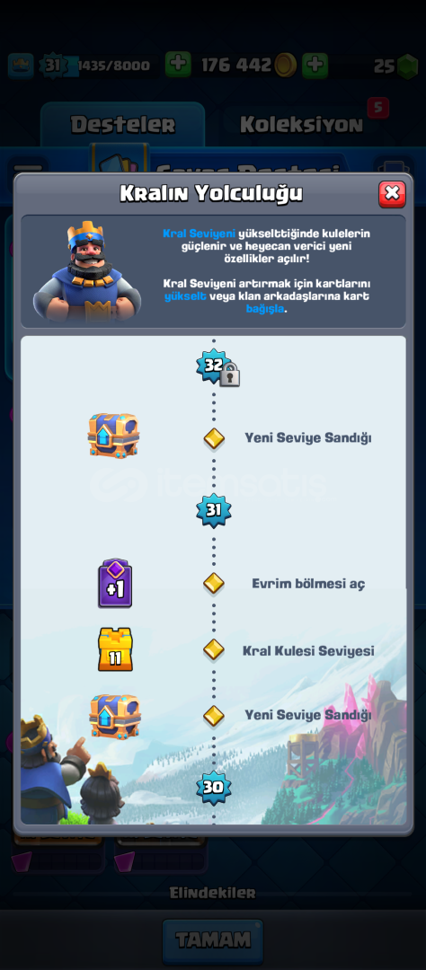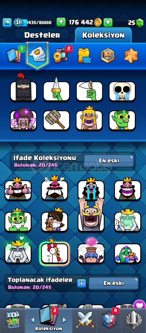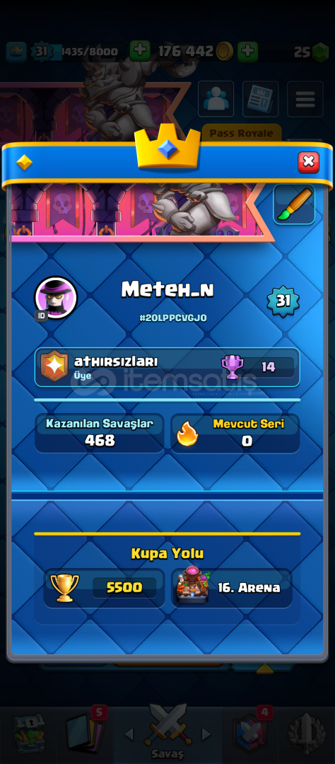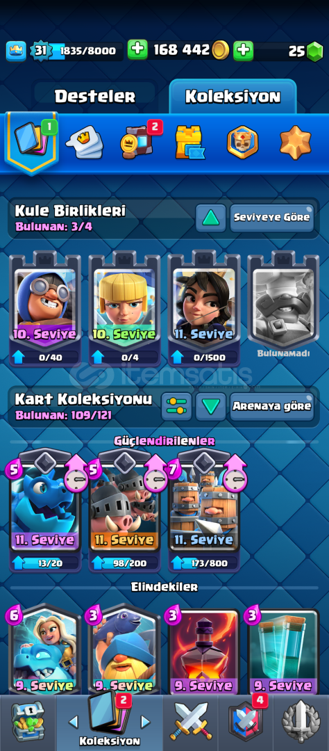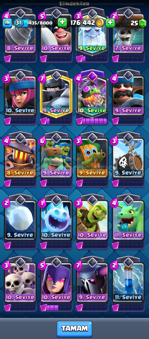 Acil Satılıktır. 5500 kupada mükemmel emojiler vardır.ejderha evrimi vardir.kraliyet aşçısı hariç tüm kule birlikleri vardir.bu kadar uygun veren hesap yoktur.pazarlık olmaz