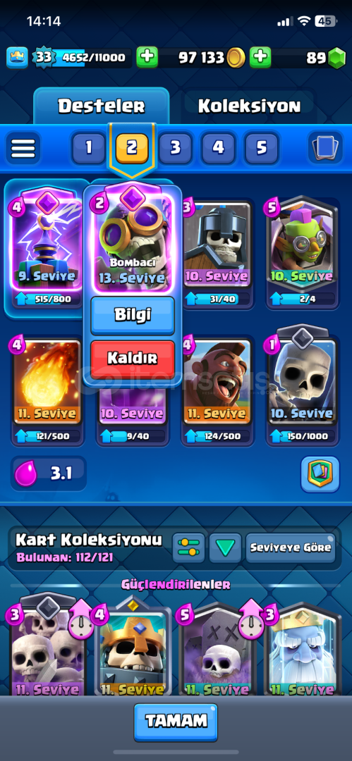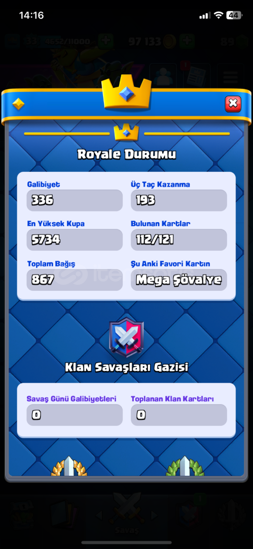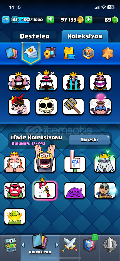 5561 Kupalı CR hesabı:89 taş97bin altın33 seviyekartların ortalama seviyesi 114 tane evrim var,1 tane evrim parçasıelektro ejder,okçular,tesla,bombacı evrimlitokmak emojisi ile seeok’un emojisi varİLK MAİLAKTİF OLMASAM BİLE ALABİLİRSİNİZ