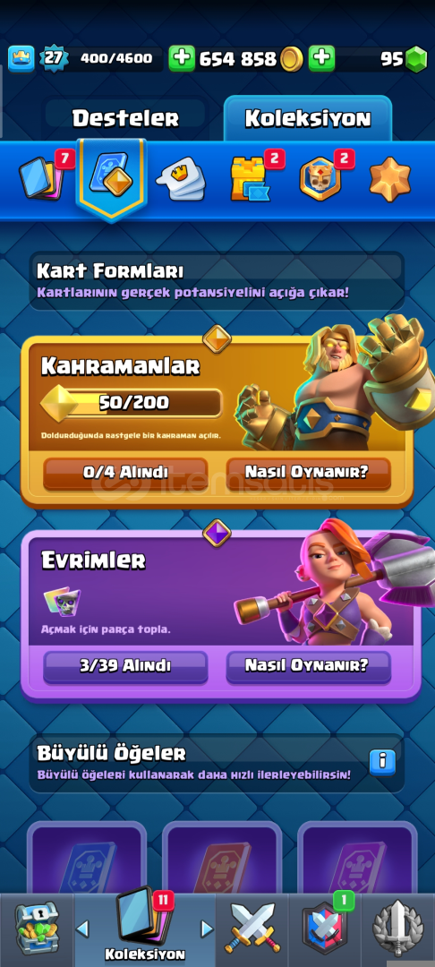 3 Evrim aktif ( Cadı , Tesla ve Büyücü )5.5k kupa89 kart açık