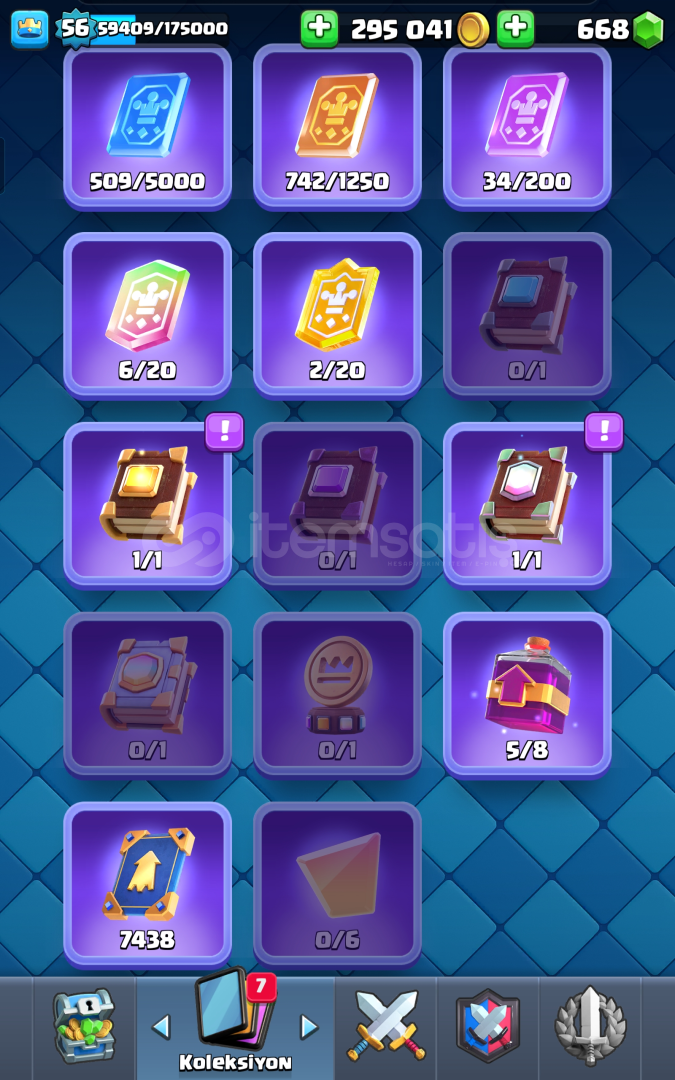 🎯 13500+ KUPA | ELİT + EVRİMLİ KARTLAR🔹56 seviye, 20k elit kart ve full dolu joker kartlar.🔹 440 elmas, 56 emoji🔹 10.000+ kupa ile zirvede oynayan nadir hesaplardan biri.🔹 10+ Evrimli ve 13+ Elit kartla güncel metaya tam uyum.🔹 Profilde özel rozetler, nadir kule skinleri ve emojiler mevcut.🔹 Arena rozetleri, sezon kupaları ve tam gelişmiş kart koleksiyonu ile tam bir Vitr...