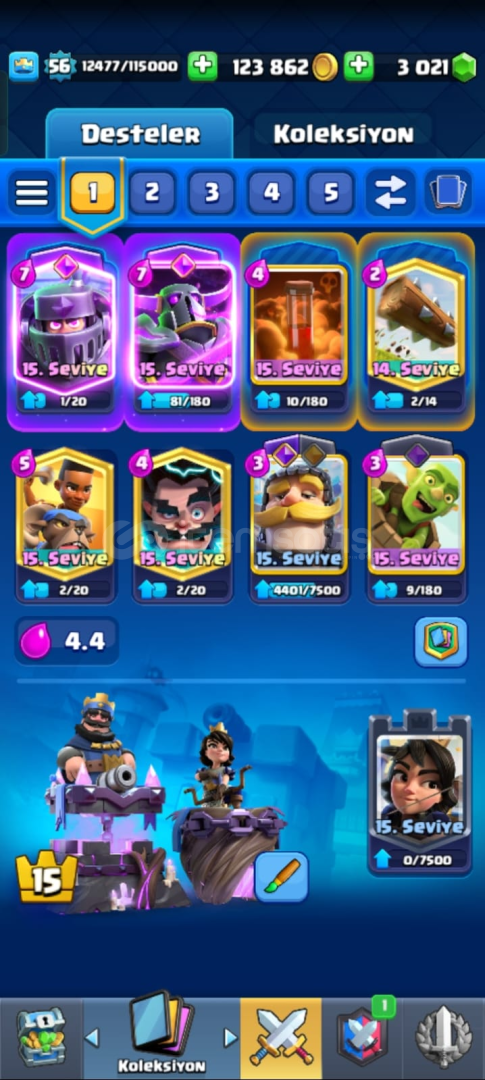 Öncelikle şunu dile getirmeyi isterim halihazırdaki piyasayı bilmediğimden dolayı böyle kendimce uygun bir fiyat yazdım olur da uygun görülmez ise fiyat konusunda elimden geldiğince yardım sağlarım. Hesap 3 yıllıktır 2026 ile 4. yılına geçiş yapacaktır Fazla sayıda kule deseni emotlar mevcuttur 8 adet 15 seviye kart bulunmaktadır 13 adet de 14 seviye kart bulunmaktadır henüz maximum seviyede bir kartım yok ancak 16.seviyeye yakın birkaç kartım var 3k taş ile bu biraz kolay olacaktır ayrıca hesaba hiç para yatırılmamıştır daha fazla bilgi için ulaşabilirsiniz.