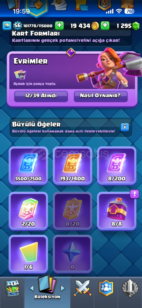 56 SEVİYE12 EVRİM + 2 TANE YARIM + 1 TANE EVRİM PARÇASI73 EMOJİ500 TAŞ İSİM DEĞİŞTİRME19 MAX 4 tane 15 1 tane 167 KULE DESENİ