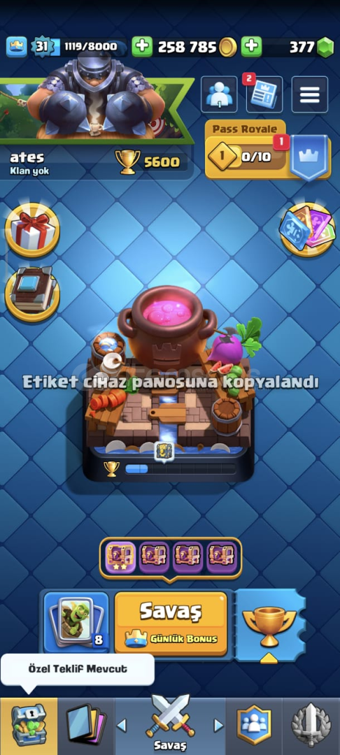 Yeni güncelleme sebebiyle sezon geçişlerinde CLASH ROYALE HESAPLARINDA kupa kaybı yaşanabiliyor bilginize.