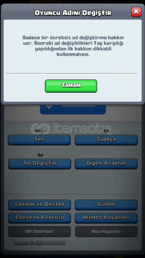 Ücretsiz İsim Değiştirme Hakkı + 1100 Taş + Clash Of Clans Belediye 11 Hesapta İçinde Bulunmaktadır. ⭐️